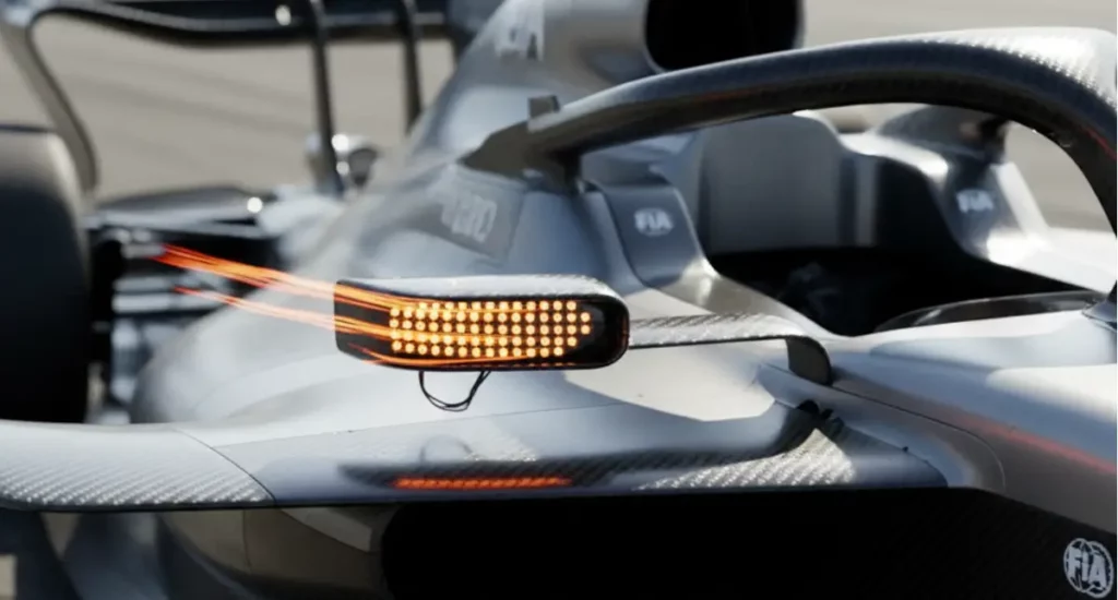 Pour des raisons de sécurité, la FIA a profité de cette nouvelle réglementation 2026 pour renforcer la visibilité des voitures, notamment par l’intensité/nombre de feux. Ainsi, les monoplaces seront équipées de feux arrière plus visibles et qui disposeront de nouveaux états d’allumage pour indiquer plus précisément l’état de la voiture (recharge, pluie…).
